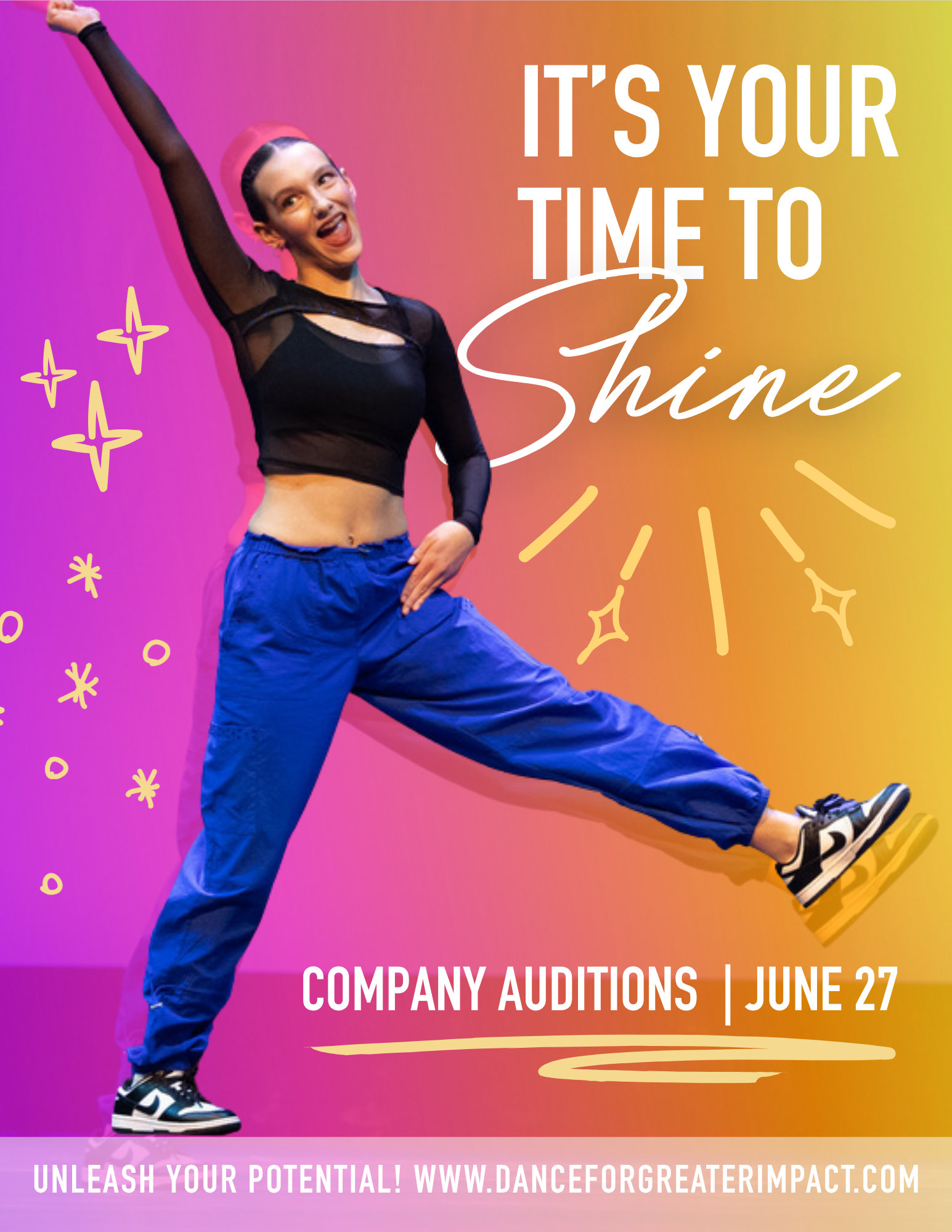 Auditions for our 2026–2027 Company Team are calling your name! This is your chance to grow, challenge yourself, and shine on stage alongside an inspiring team of dancers.